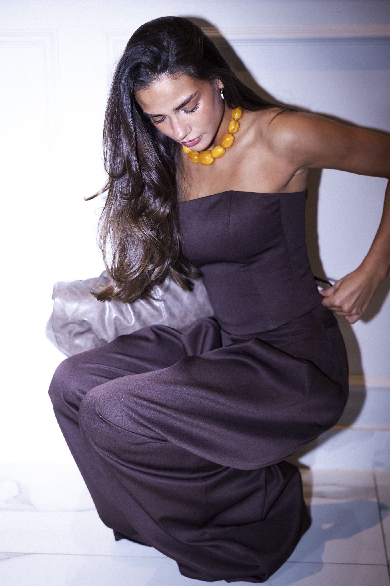 Straight neckline corset in brown