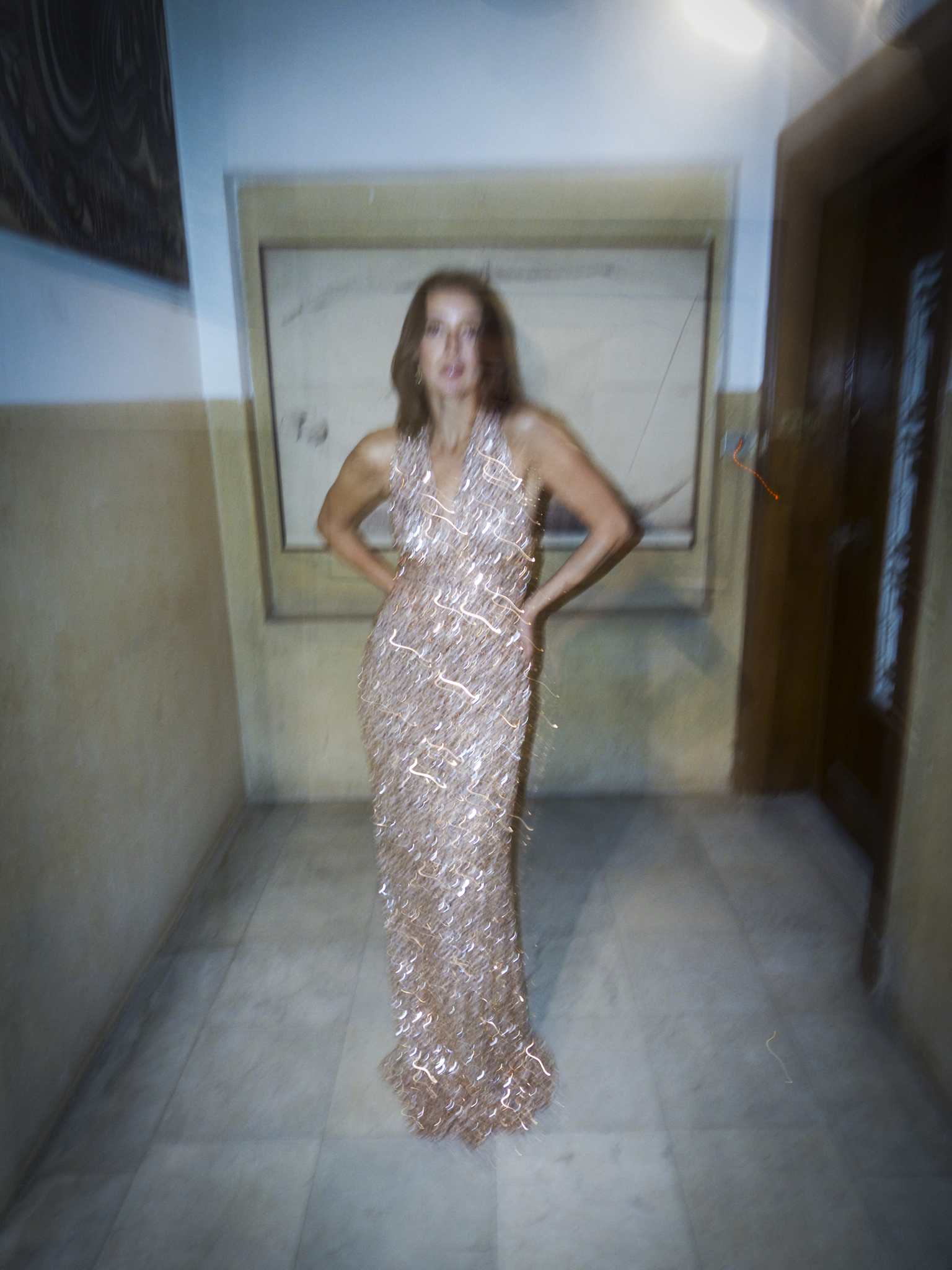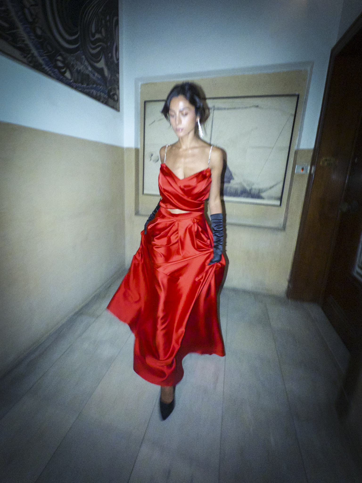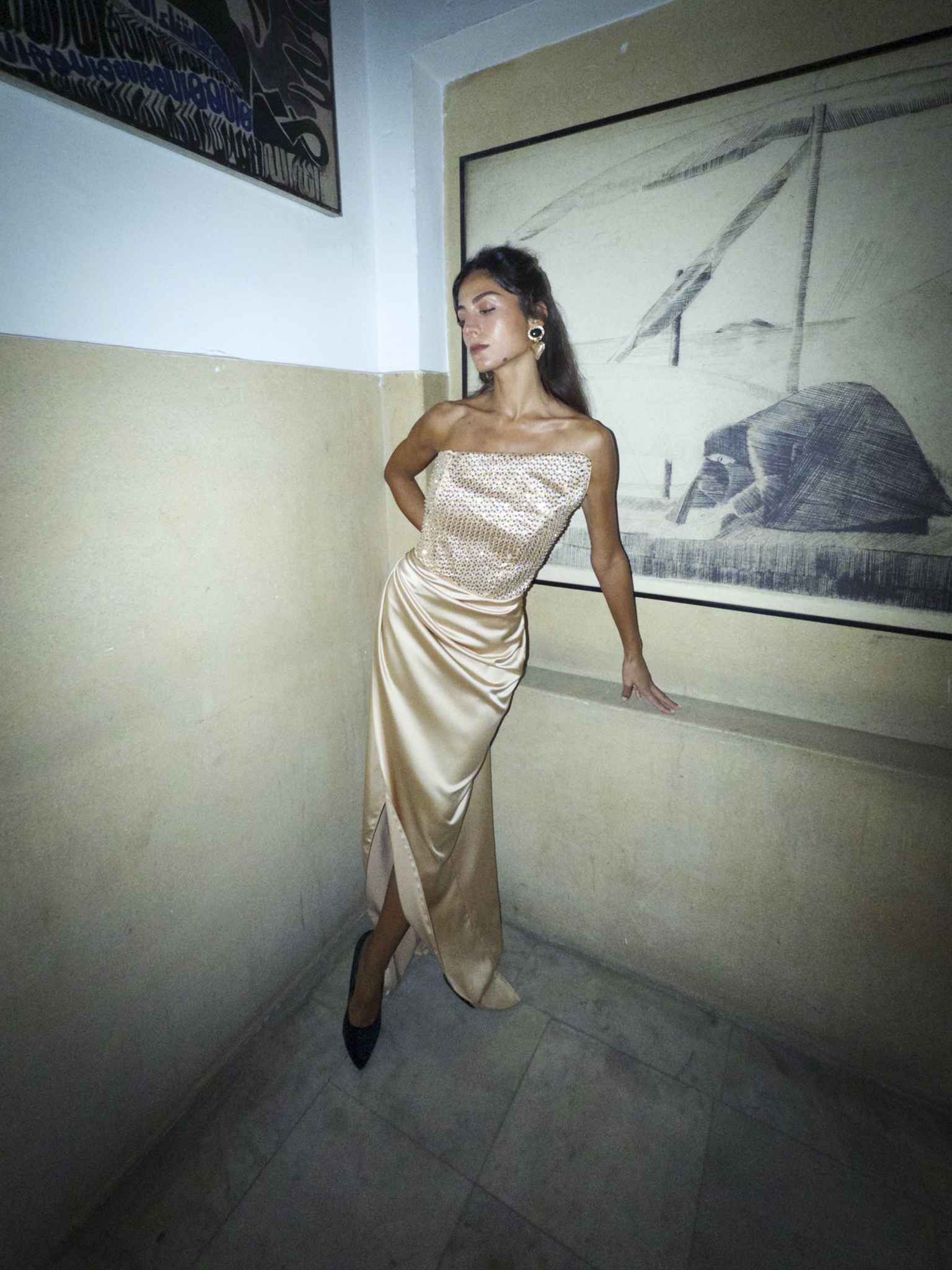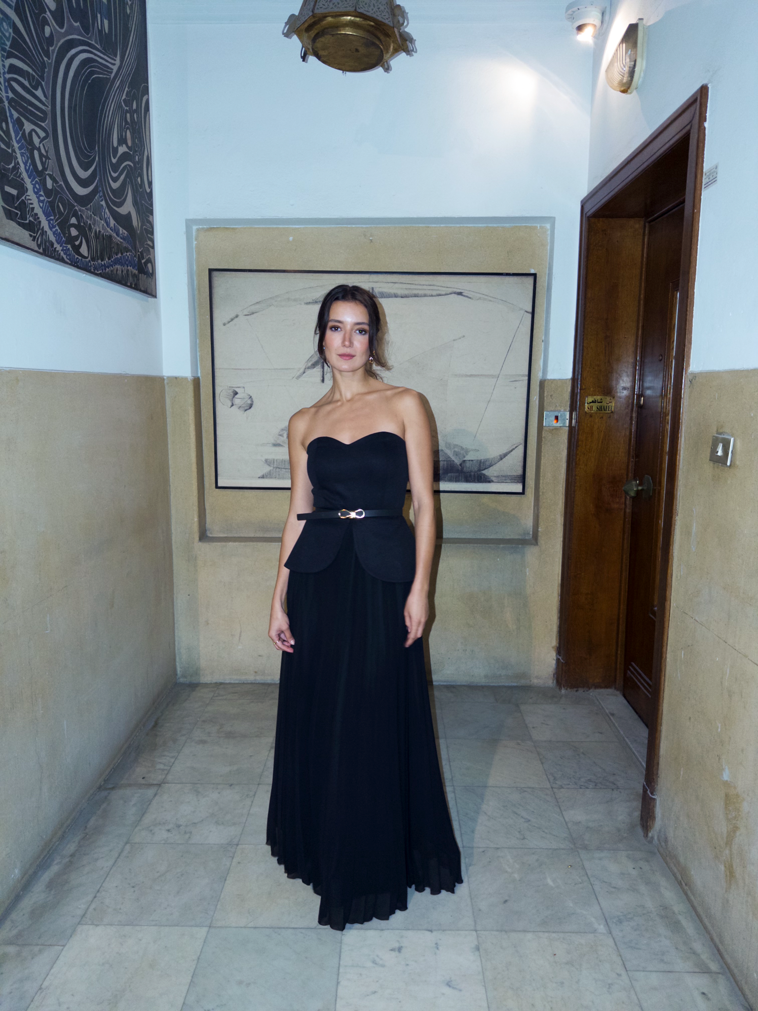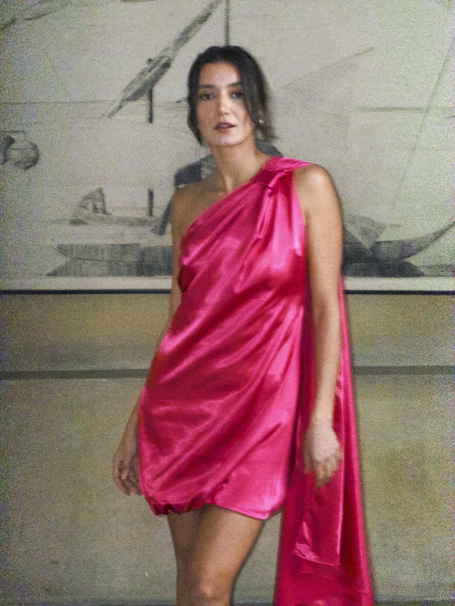 One shoulder Sequin Puffy Sleeved Dress in Black