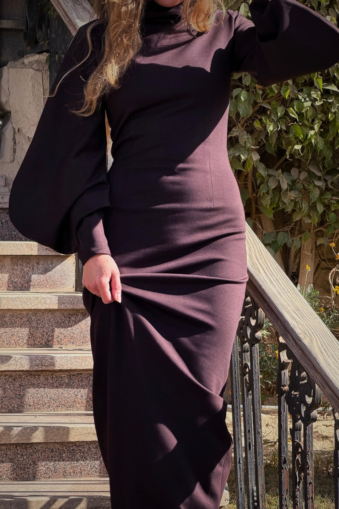 High Collar Statement Sleeves Dress