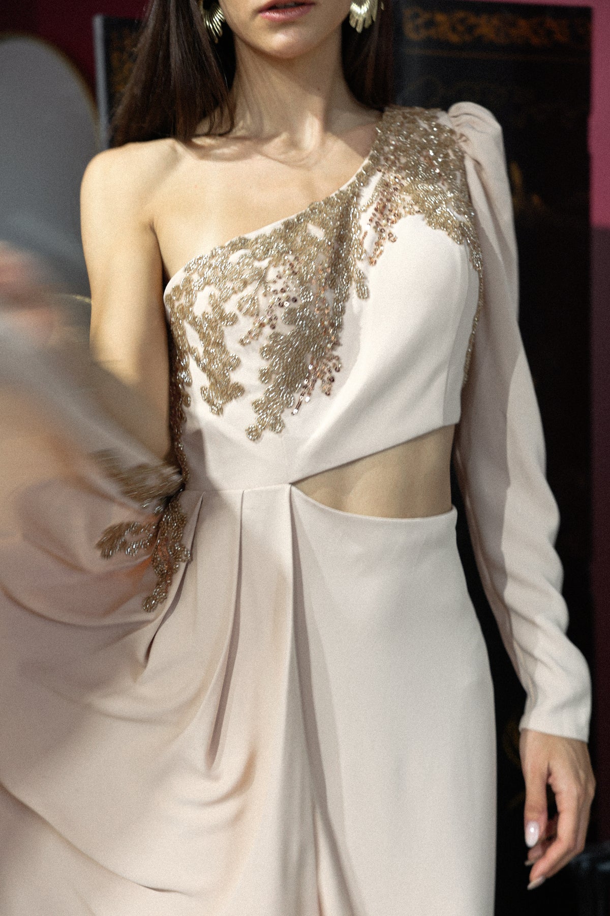 CUTOUT ONE SHOULDER DRESS IN BEIGE